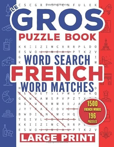 Le gros puzzle book French Word Search & Word Matches: 196 Large Print puzzles | Various theme +1500 most commonly spoken French words with traduction … pages | Improve your vocabulary for All Ages