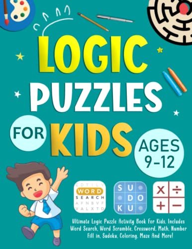 A comprehensive collection of Sudoku, Crossword, Word Search, Logic Puzzles featuring Logic Puzzles For Kids Ages 9-12 Years Old: Ultimate Logic Puzzle Activity Book For Kids. Includes Word Search, Word Scramble, Crossword, Math, Number Fill in, Sudoku, Coloring, Maze And More!. Perfect for puzzle enthusiasts looking for challenging and entertaining brain games.